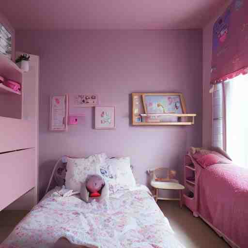 cute girls bedroom, simple japanese girls bedroom, kawaii, 8 k p